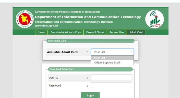Department of ICT (DOICT) Office Sohayok Exam Date and Admit Download 2025 have been published. The authority has published the DOICT Office Sohayok Exam Date and Admit Card Download 2025. Department of Information and Communication Technology (DOICT) Exam Date and Admit Download 2025 is good news for job seekers in Bangladesh. All information on the DOICT Office Support Staff Exam Date and Admit Download 2025 is available below. The Department of Information and Communication Technology (DOICT) is a Government Organization in Bangladesh.