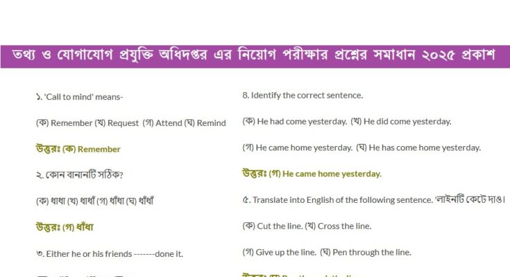 Department of ICT (DOICT) Office Sohayok Exam Question Solution 2025 has been published. Department of ICT (DOICT) MCQ Exam Question Solution 2025 has been solved by our educational team. DOICT Office Sohayok Exam Question Solution 2025 is good news for job seekers in Bangladesh. All information on the Department of ICT Office Support Staff Exam Question Solution 2025 is available below. The Department of ICT (DOICT) is a renowned Government institution in Bangladesh.