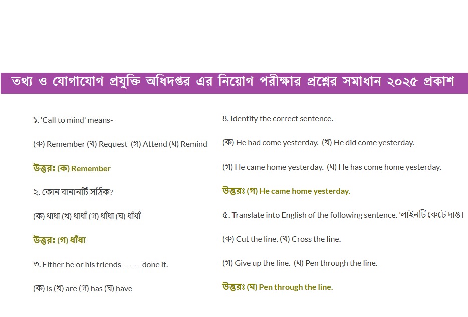 Department of ICT (DOICT) Office Sohayok Exam Question Solution 2025 has been published. Department of ICT (DOICT) MCQ Exam Question Solution 2025 has been solved by our educational team. DOICT Office Sohayok Exam Question Solution 2025 is good news for job seekers in Bangladesh. All information on the Department of ICT Office Support Staff Exam Question Solution 2025 is available below. The Department of ICT (DOICT) is a renowned Government institution in Bangladesh.