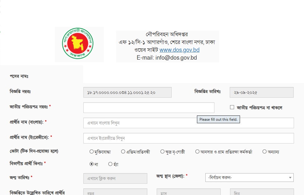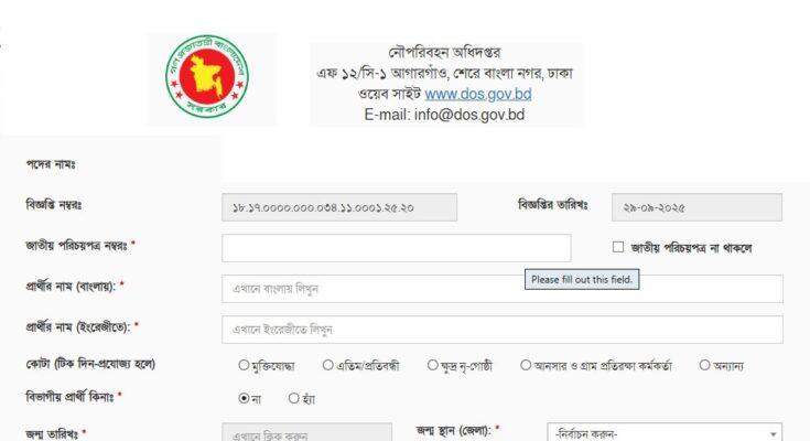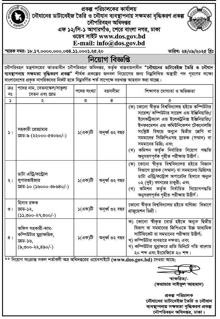 Department of Shipping (DOS) Job Circular 2025 has been published. The Shipping Department Job Circular 2025 has been published by the authority. Department of Shipping Job Circular 2025 is great news for job seekers in Bangladesh. All information on the DOS Job Circular 2025 is available below. The Department of Shipping (DOS) is a Government Organization of Bangladesh.
