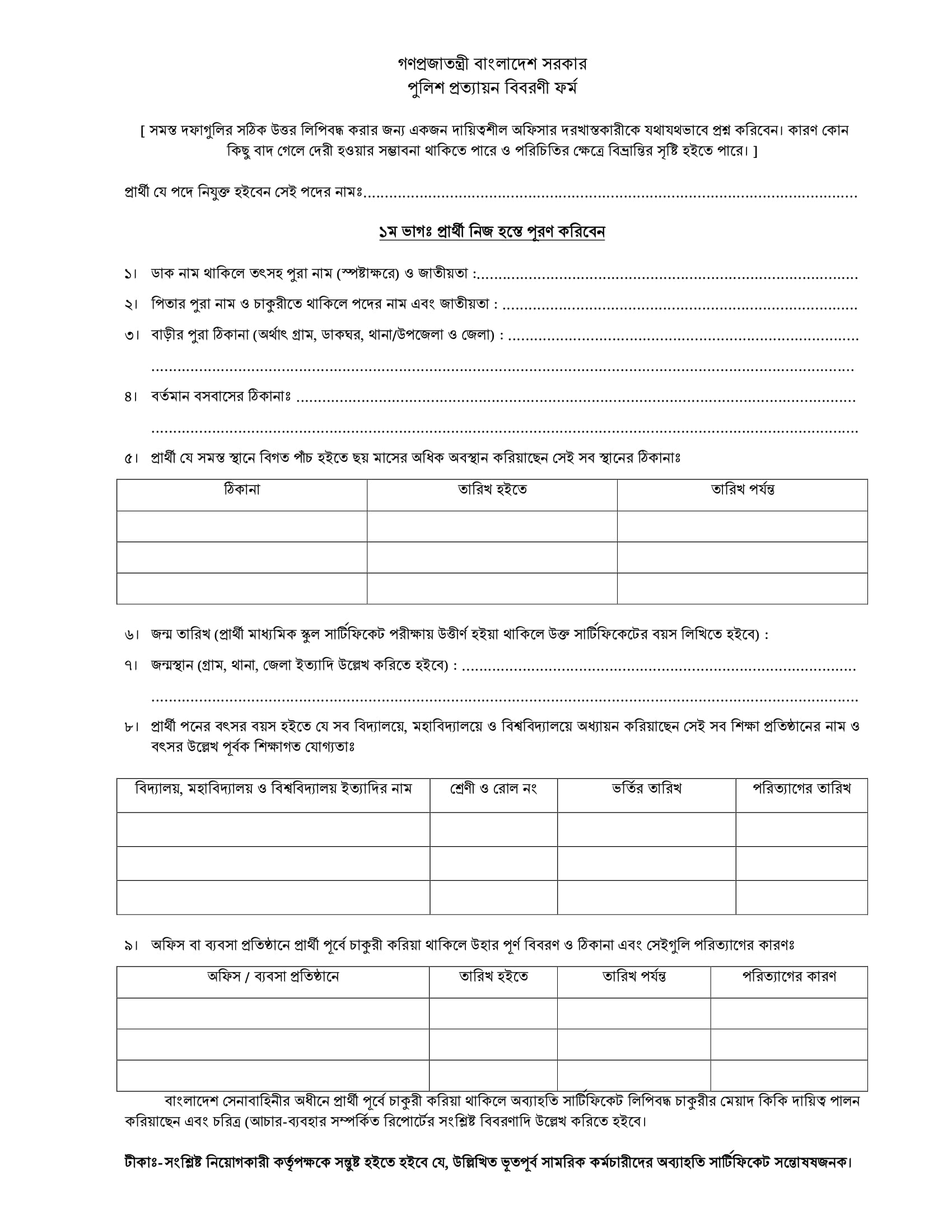 Official Police Verification Form PDF Notice Link: Click here to download the Police Verification Form