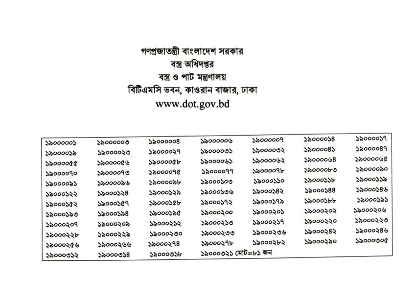 Department of Textiles (DOT) Exam Result 2025 has been published. The authority has published the DOTR Exam Result 2025. Department of Textiles Technical Assistant Exam Result 2025 is good news for job seekers. All information on the DOT Exam Result 2025 is available below. The Department of Textiles (DOT) is a Government organization in Bangladesh.