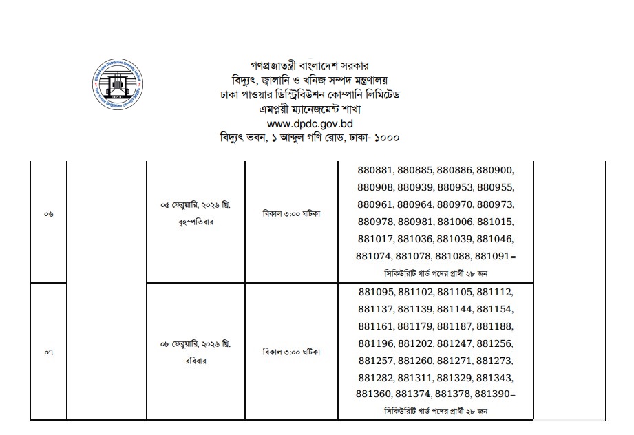 See/download the Dhaka Power Distribution Company (DPDC) Limited Viva Notice 2026 from the images below:
