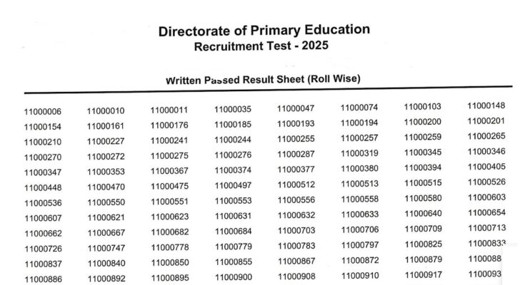 Directorate of Primary Education DPE Job Exam Result 2025: