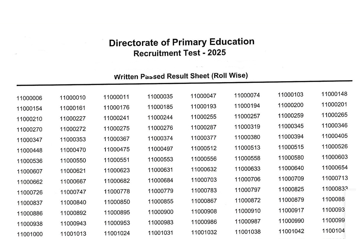 Directorate of Primary Education DPE Job Exam Result 2025: