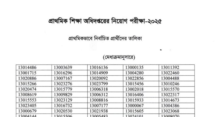 Directorate of Primary Education DPE Job Exam Result 2025: