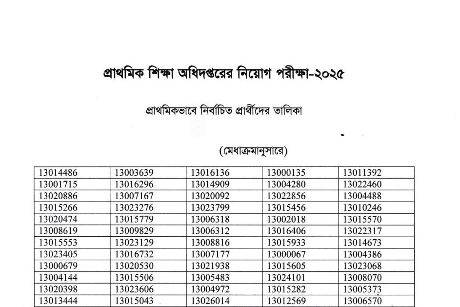 Directorate of Primary Education DPE Job Exam Result 2025: