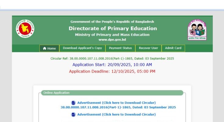 See/download Directorate of Primary Education (DPE) Job Circular 2025, Job Application Form,  ‍Job Apply Instructions, Application Fee, Payment Process, Salary, Age, and Other Information from the images below:
