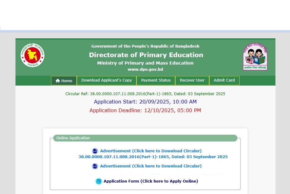 See/download Directorate of Primary Education (DPE) Job Circular 2025, Job Application Form,  ‍Job Apply Instructions, Application Fee, Payment Process, Salary, Age, and Other Information from the images below: