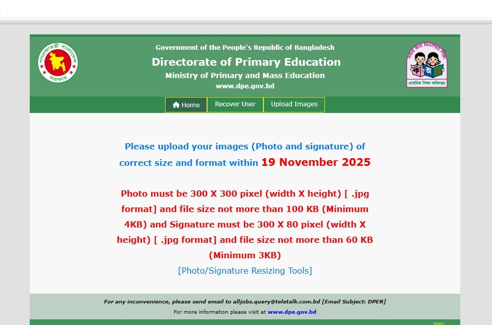 Directorate of Primary Education DPE Upload Images Notice 2025: