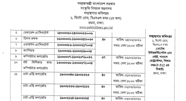 Department of Public Libraries (DPL) Viva and Practical Test Date 2026 has been published. The authority has published the Department of Public Libraries Viva and Practical Test Date 2026. DPL Viva and Practical Test Date 2026 is good news for job seekers. All information on the Department of Public Libraries Data Entry Operator Viva and Practical Test Date 2026 is available below. The Department of Public Libraries (DPL) is a Government organization in Bangladesh.