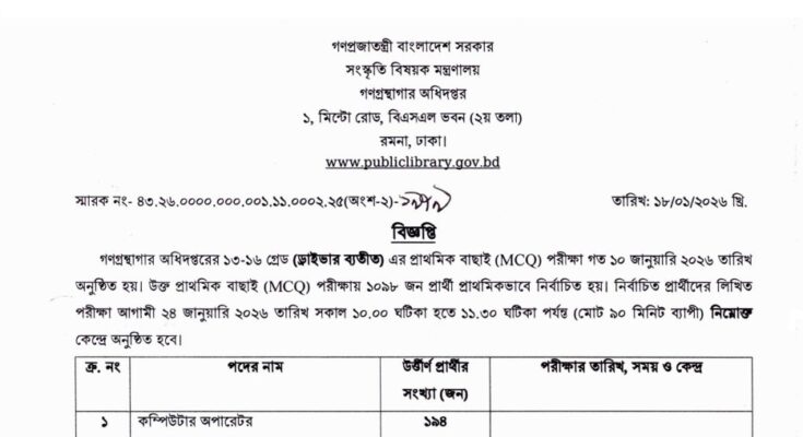 The authority has published the Department of Public Libraries Exam Date 2026. The Department of Public Libraries is one of the largest Government organizations in Bangladesh. The Department of Public Libraries (DPL) has published a huge job circular for the Authority. All information regarding the appointment of the Department of Public Libraries (DPL) is given on our website, jobstestbd.com. We publish all job circulars daily, including government jobs in Bangladesh, Bank Jobs in Bangladesh, Private Jobs in Bangladesh, International NGOs in Bangladesh, Private companies in Bangladesh, and Private University Jobs in Bangladesh. Results of Bank Jobs, Government Jobs, Government University Jobs, and Part-time Jobs in Bangladesh, as well as educational support, are available on our website. We provide different types of job information and give some adequate information or resources and job tips that help to get a job easily. We trust that our distributed data helps job seekers who are looking for superior employment. We likewise share slanting assets for learners who are expanding their knowledge. Our primary goal is to establish a trustworthy online platform in Bangladesh by providing accurate information that benefits individuals. All the jobs on this website are not only for unemployed individuals but also for those who are employed. All types of suggestions and solutions to questions for various competitive exams are available here. We provide various kinds of educational support on our website, jobstestbd.com. So every day, tune in to our website for all kinds of academic support. Please like our Facebook page, jobstestbd.com.