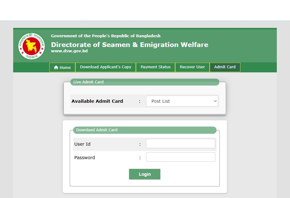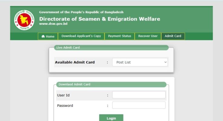 Directorate of Seamen and Emigration Welfare (DSW) Exam Date and Admit Card Download 2025 has been published. DSW Exam Date and Admit Card Download 2025 has been published by the authority. The Directorate of Seamen and Emigration Welfare Exam Date and Admit Card Download 2025 is good news for job seekers. All information on the DSW Exam Date 2025 is available below. The Directorate of Seamen and Emigration Welfare (DSW) is a government organization of Bangladesh.