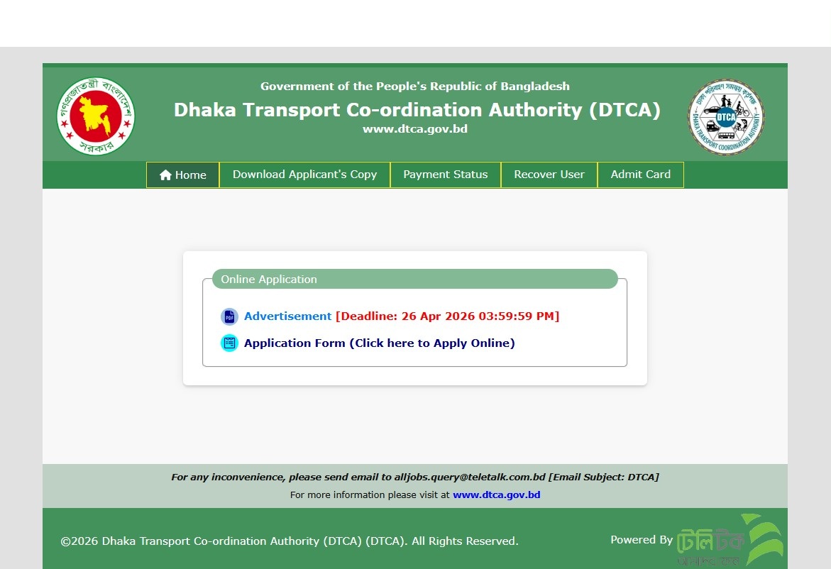 See/download the Dhaka Transport Coordination Authority (DTCA) Job Circular 2026, Job Apply Instructions,  Job Application Form, Application Fee, Payment Process, Salary, Age, and Other Information from the images below:
