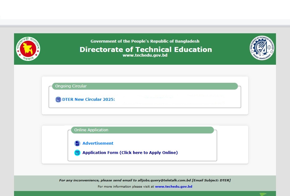 DTER Job Circular 2025 has been published. The authority has published the Directorate of Technical Education (DTE) Job Circular 2025. The Technical Education Department Job Circular 2025 is hopeful news for job seekers in Bangladesh. All information on the Directorate of Technical Education Job Circular 2025 is available below. The Directorate of Technical Education (DTE)  is a Government Organization in Bangladesh.