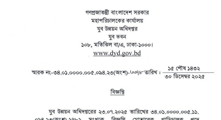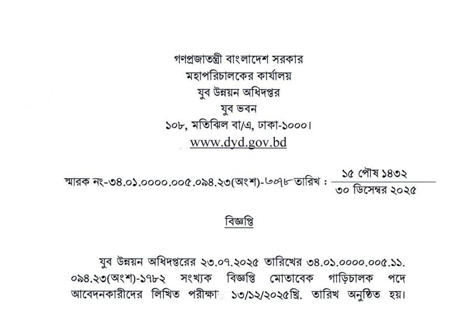 DYD Practical Test Date 2025 has been published. The authority has published the DYD Driver Practical Test Date 2025. Department of Youth Development Practical Test Date 2025 is good news for job seekers. All information on the DYD Practical Test Schedule 2025 is available below. The Department of Youth Development (DYD) is a government organization in Bangladesh.