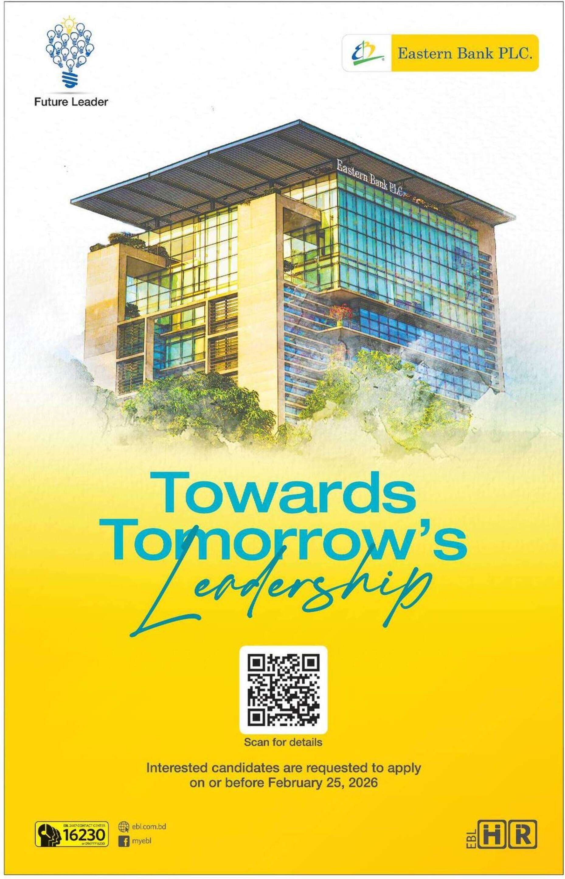 Eastern Bank Future Leader Program Job Circular 2026 has been published. The authority has published the Eastern Bank PLC Job Circular 2026. Eastern Bank PLC Future Leader Program Job Circular 2026 is good news for job seekers in Bangladesh. All information on the Eastern Bank Future Leader Program 2026 is available below. Eastern Bank PLC is a private bank in Bangladesh.