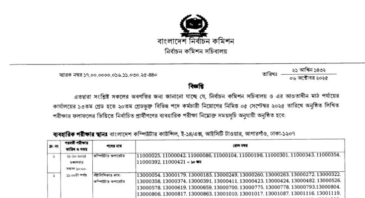 ECS Practical Test Date 2025 has been published. The authority has published the ECS Viva Date 2025. The ECS Practical Test Date 2025 is good news for job seekers. All information on the Election Commission  Practical Test Date 2025 is available below. The Election Commission Secretariat (ECS) is a Government Organization in Bangladesh.