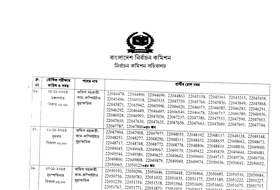 Election Commission Secretariat (ECS) Viva Date 2025 has been published. The authority has published the ECS Viva Date 2025. ECS Office Assistant Cum Computer Typist Viva Date 2025 is good news for job seekers. All information on the Election Commission Viva Date 2025 is available below. The Election Commission Secretariat (ECS) is a Government Organization in Bangladesh.