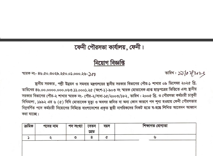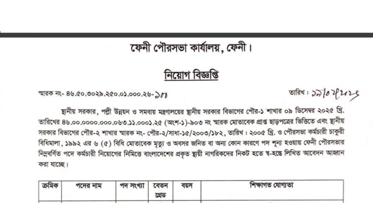 Feni Pourashava Job Circular 2026: