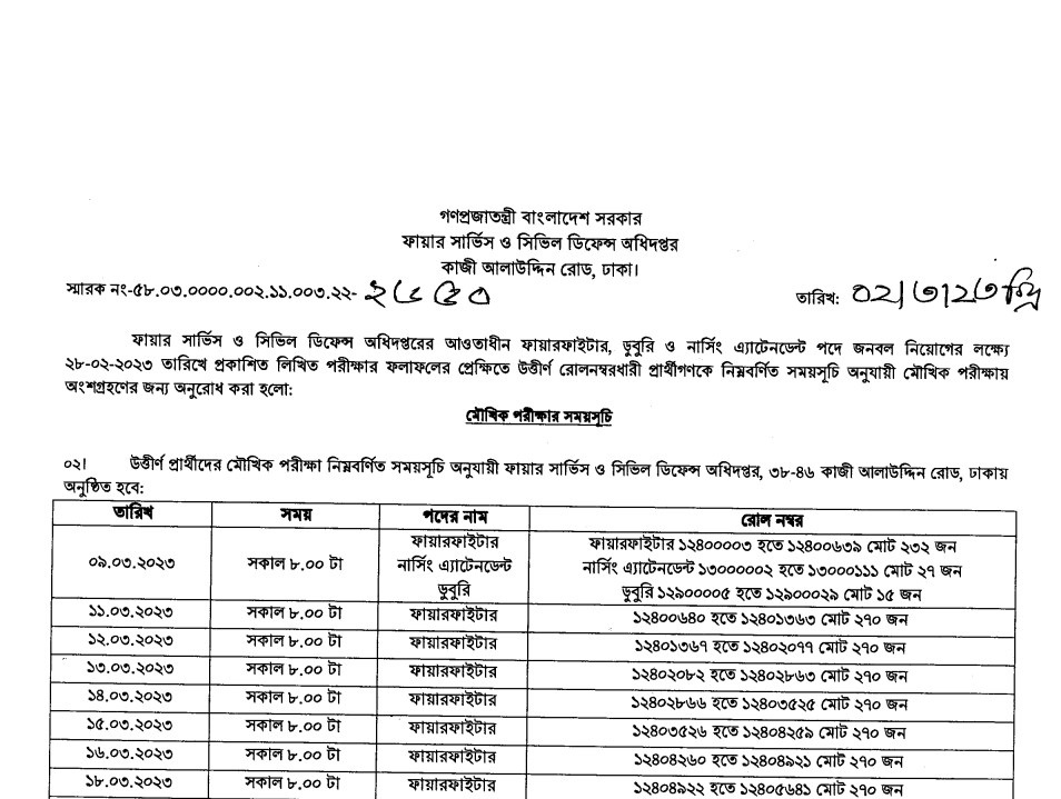 Fire Service Viva Date 2023 has been published. Fire Service Firefighter Viva Date 2023 has been published by the authority. FSCD Firefighter Viva Date 2023 is good news for the students. All information on the Fire Service and Civil Defence Firefighter Viva Date 2023 is available below. Fire Service and Civil Defence (FSCD) is a government organization in Bangladesh.