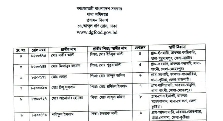 Directorate General of Food (DGFood) Job Appointment Letter 2026 has been published. The authority has published the DGFood Job Appointment Letter 2026. Food Exam Result 2025 is good news for job seekers in Bangladesh. All information on the Food Job Appointment Letter 2026 is available below. The Directorate General of Food (DGFood) is a government organization in Bangladesh.