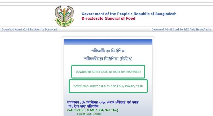 DGFood Sub Inspector of Food Admit Download 2025 has been published. The authority has published the Directorate General of Food (DGFood) Admit Card Download 2025. The Food Sub-Inspector Admit Download 2025 is good news for job seekers in Bangladesh. All information on the Food Sub Inspector of Food Admit Card Download 2025 is available below. The Directorate General of Food (DGFood) is a government organization in Bangladesh.