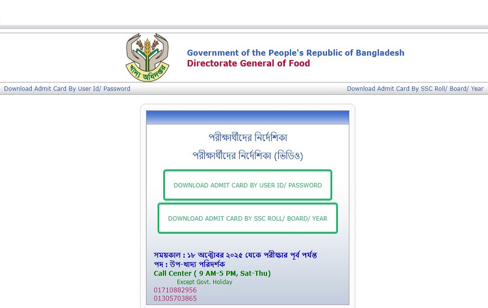 DGFood Sub Inspector of Food Admit Download 2025 has been published. The authority has published the Directorate General of Food (DGFood) Admit Card Download 2025. The Food Sub-Inspector Admit Download 2025 is good news for job seekers in Bangladesh. All information on the Food Sub Inspector of Food Admit Card Download 2025 is available below. The Directorate General of Food (DGFood) is a government organization in Bangladesh.