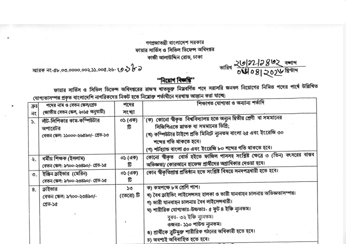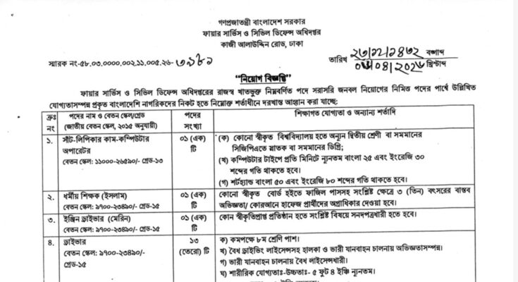 See/download Bangladesh Fire Service Job Circular 2026, Job Apply Instructions, Job Application Form,  Application Fee, Payment Process, Salary, Age, and Other Information from the images below: