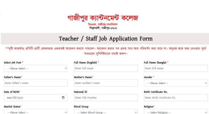 See/download Gazipur Cantonment College Job Circular 2026, Job Apply Instructions, Job Application Form, Application Fee, Payment Process, Salary, Age, and Other Information from the image below: