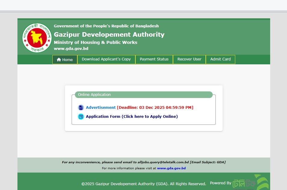 See/download Gazipur Development Authority Job Circular 2025, Job Application Form, Job Apply Instructions, Application Fee, Payment Process, Salary, Age, and Other Information from the images below: