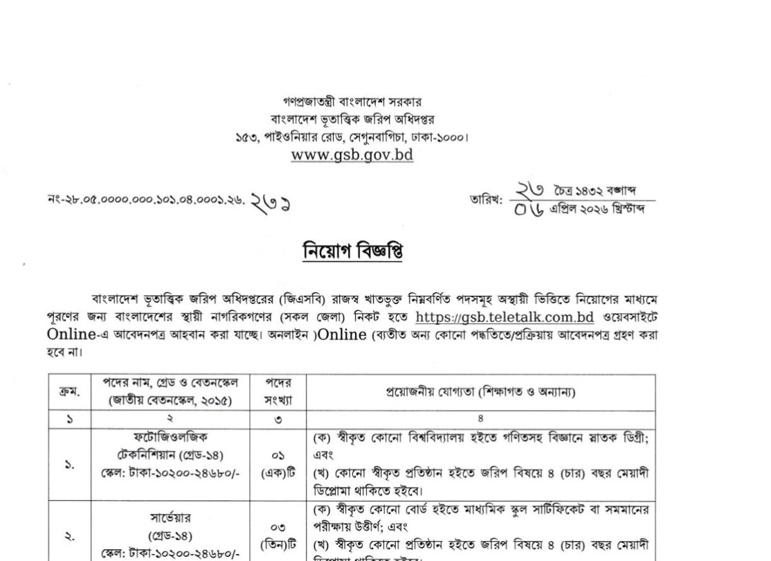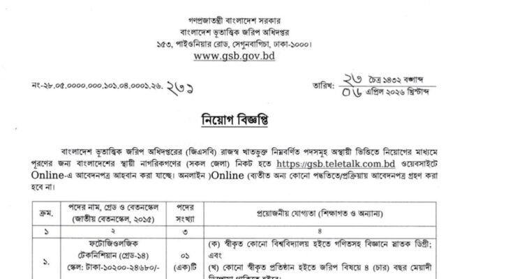 Geological Survey of Bangladesh Job Circular 2026: