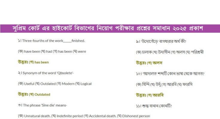 Supreme Court of Bangladesh Exam Question Solution 2025 has been published. Supreme Court MCQ Exam Question Solution 2025 has been solved by our educational team. High Court Division MCQ Exam Question Solution 2025 is good news for job seekers in Bangladesh. All information on the Supreme Court Office Assistant Exam Question Solution 2025 is available below. The Supreme Court of Bangladesh is a renowned Government institution in Bangladesh.