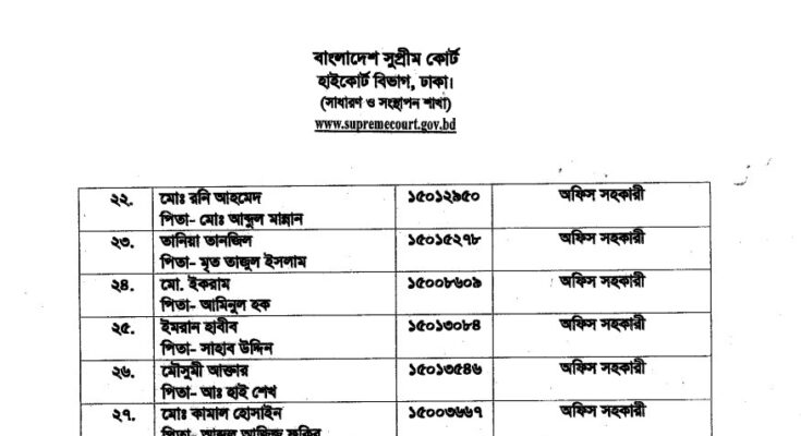 Supreme Court of Bangladesh Job Appointment Letter 2025: