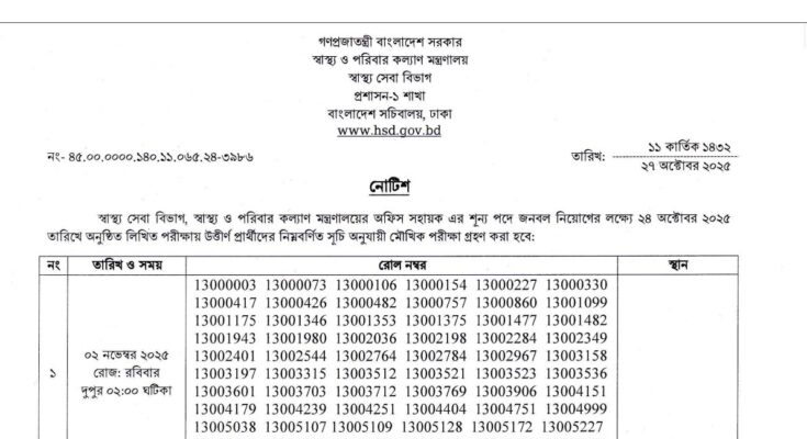 Health Services Division (HSD) Viva Date 2025 has been published. The authority has published the HSD Viva Date 2025. The Health Services Division Viva Date 2025 is good news for job seekers in Bangladesh. All information on the HSD Office Sohayok Viva Date 2025 is available below. Health Services Division (HSD) is a government organization in Bangladesh.