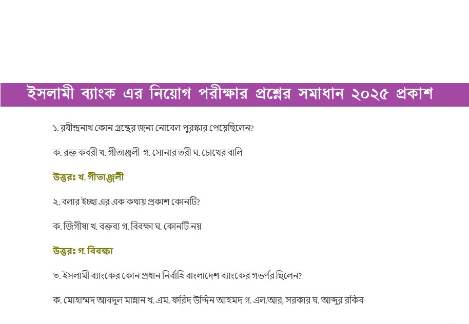 Islami Bank Exam Question Solution 2025: