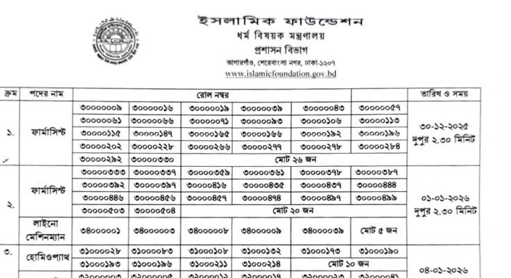 Islamic Foundation Viva Date 2025 has been published. The Islamic Foundation Bangladesh Viva Date 2025 has been published by the authority. The Islamic Foundation Pharmacist Viva Date 2025 is good news for the students. All information on the IFB Viva Date 2025 is available below. The Islamic Foundation of Bangladesh is a government organization in Bangladesh.