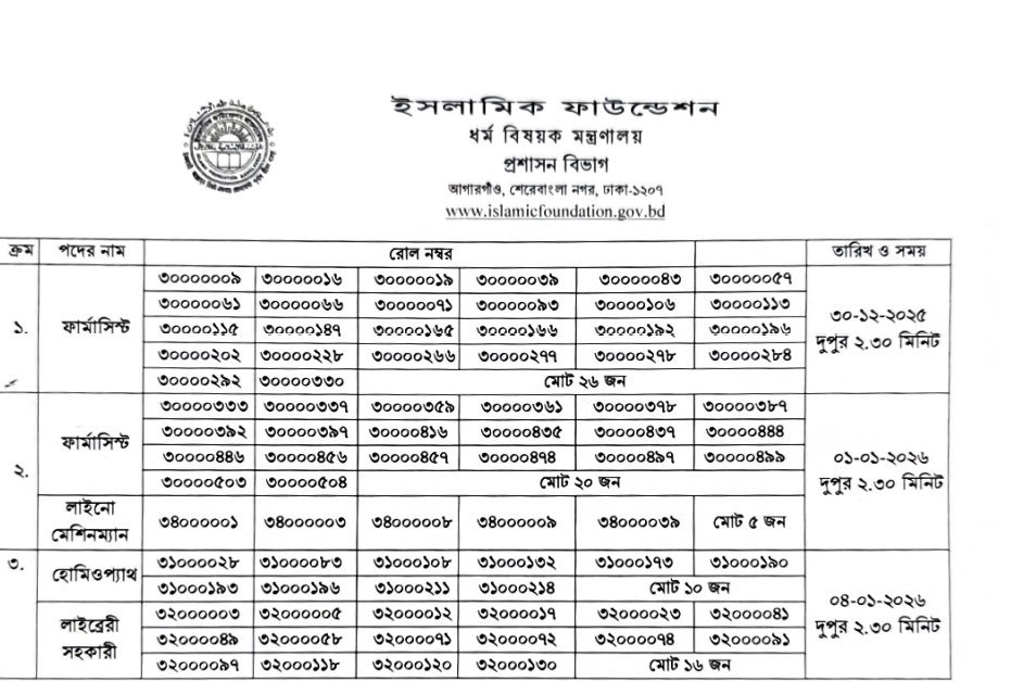 Islamic Foundation Viva Date 2025 has been published. The Islamic Foundation Bangladesh Viva Date 2025 has been published by the authority. The Islamic Foundation Pharmacist Viva Date 2025 is good news for the students. All information on the IFB Viva Date 2025 is available below. The Islamic Foundation of Bangladesh is a government organization in Bangladesh.