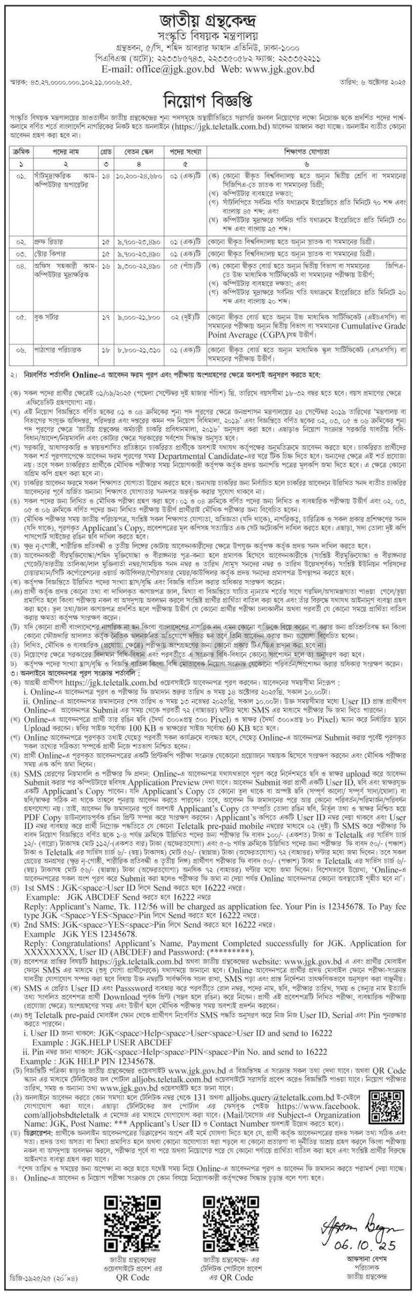 See/download Jatiya Grantha Kendro Job Circular 2025, Job Apply Instructions, Job Application Form, Application Fee, Payment Process, Salary, Age, and Other Information from the images below: