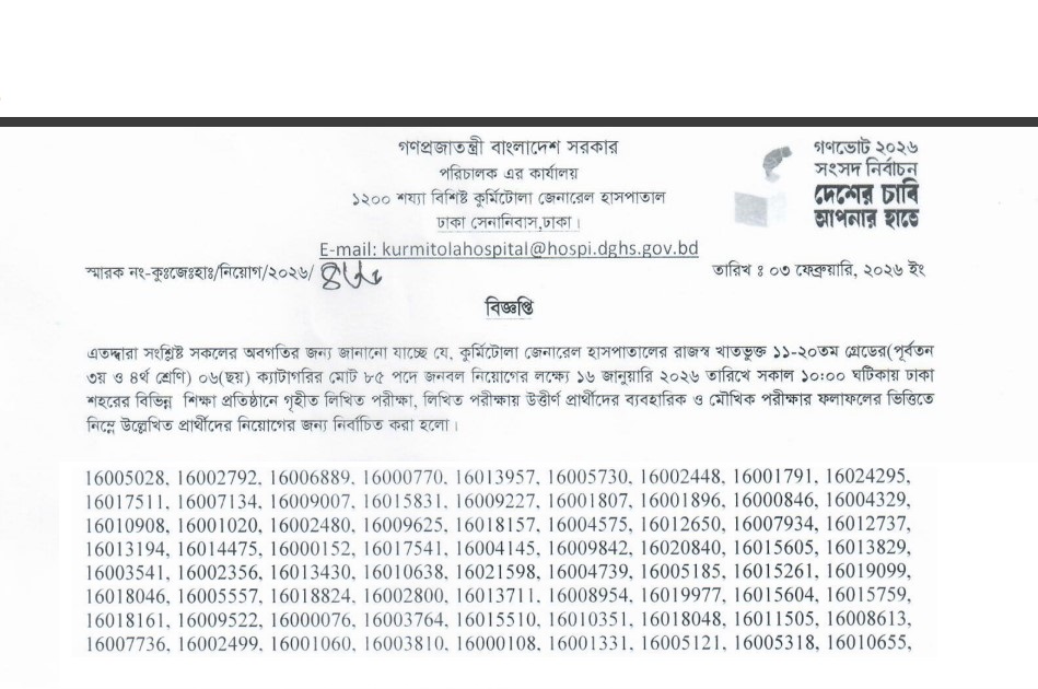 See/download Kurmitola General Hospital Exam Result Notice 2026 from the images below: