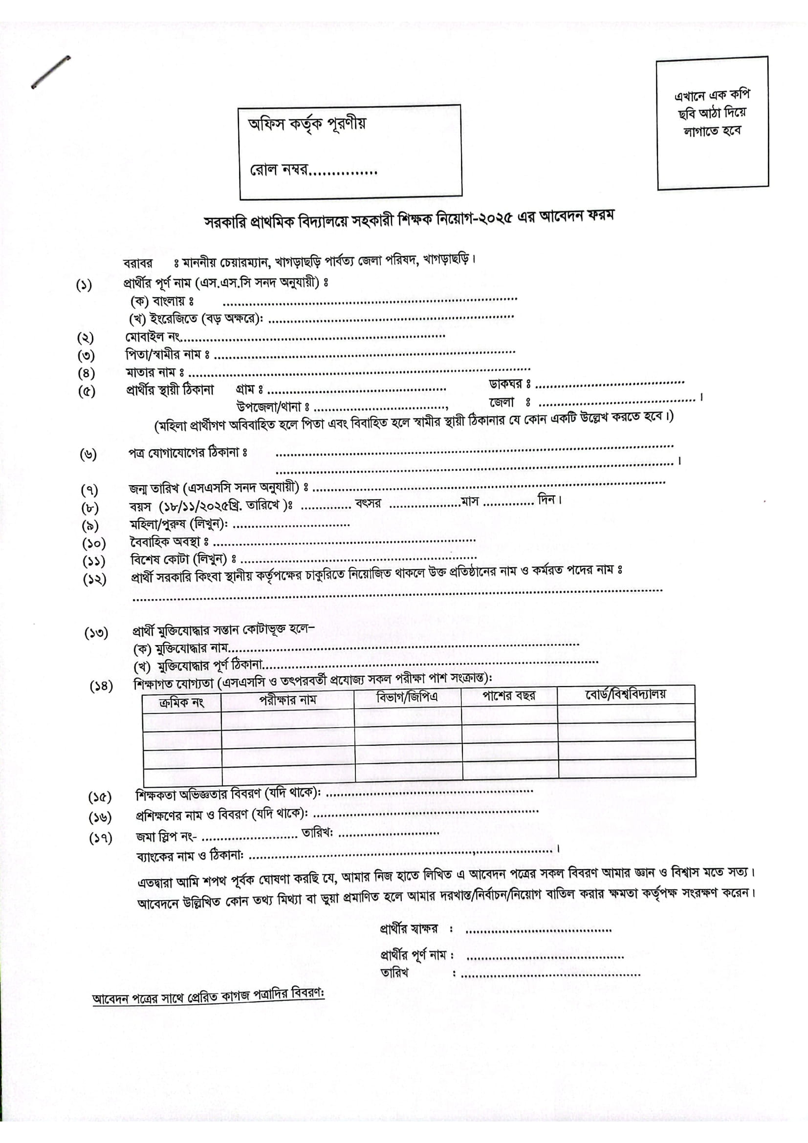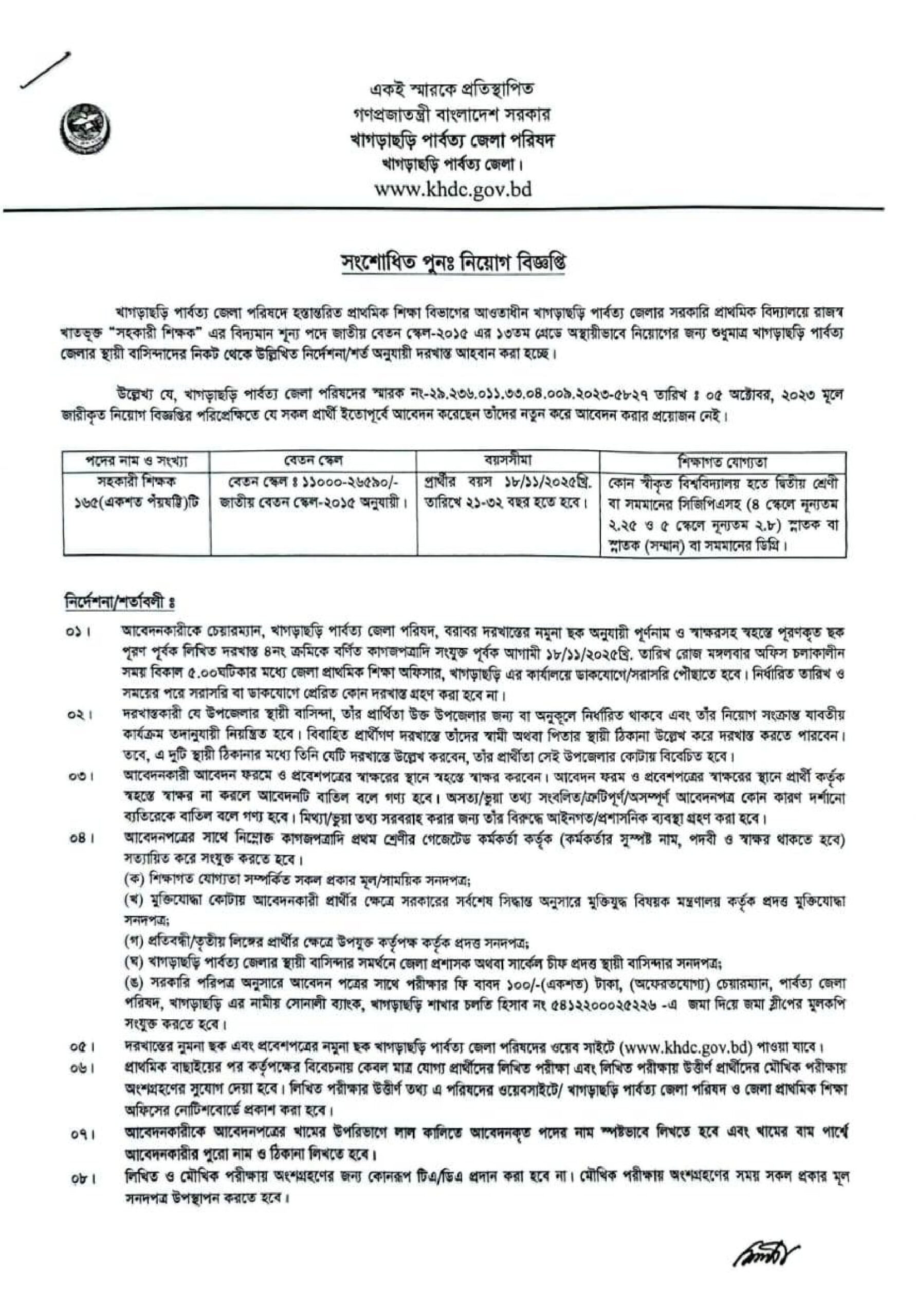 See/download Khagrachari Hill District Council Primary Assistant Teacher Job Circular 2025, Job Application Form, Job Admit Card, Apply Instructions, Application Fee, Payment Process, Salary, Age, and Other Information from the images below: