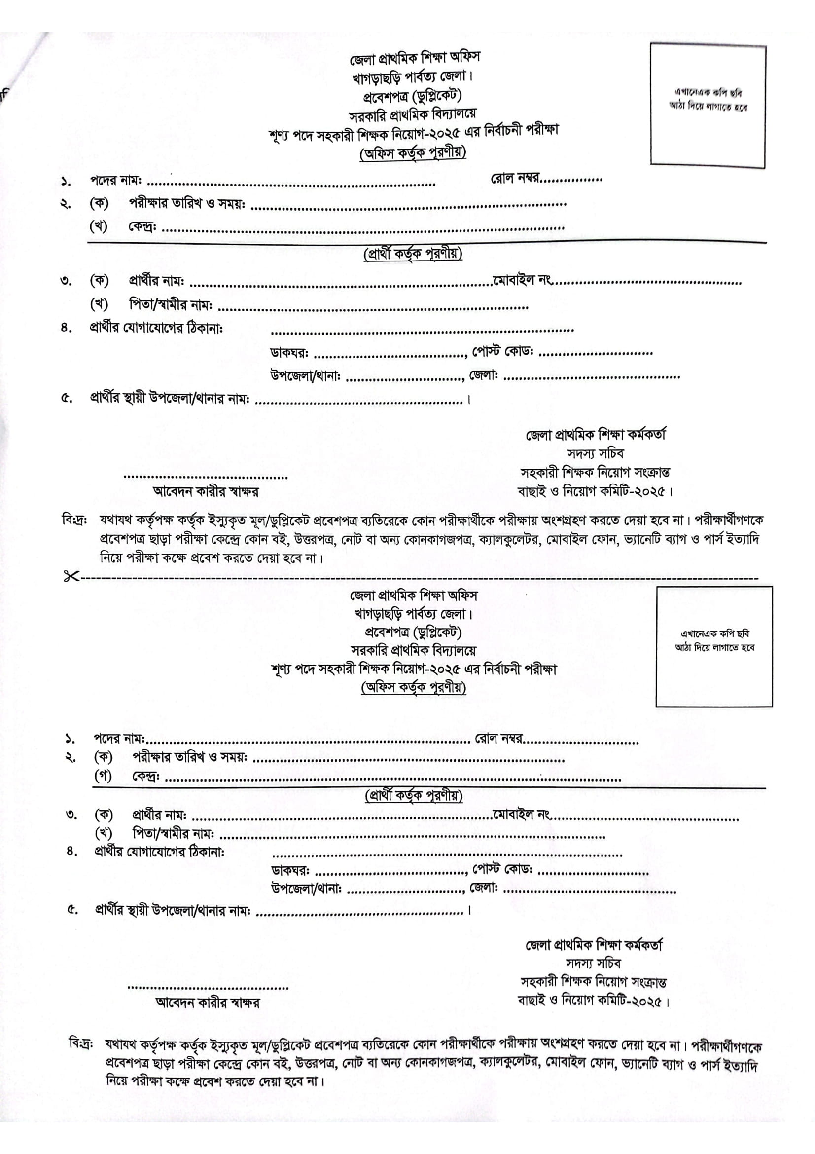 Job Application Form and Admit Card:
