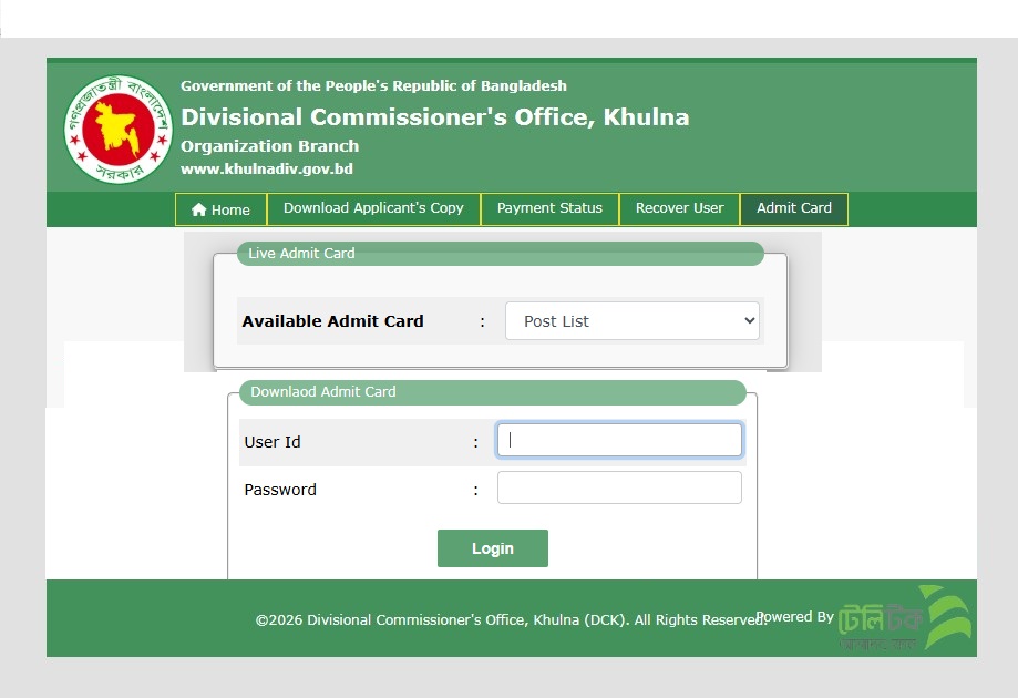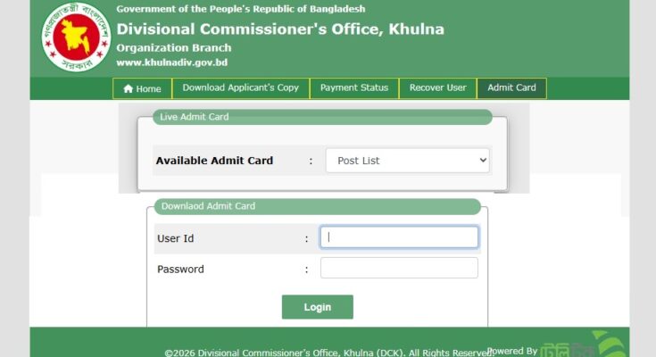 Divisional Commissioner’s Office Khulna Exam Date and Admit Download 2026: