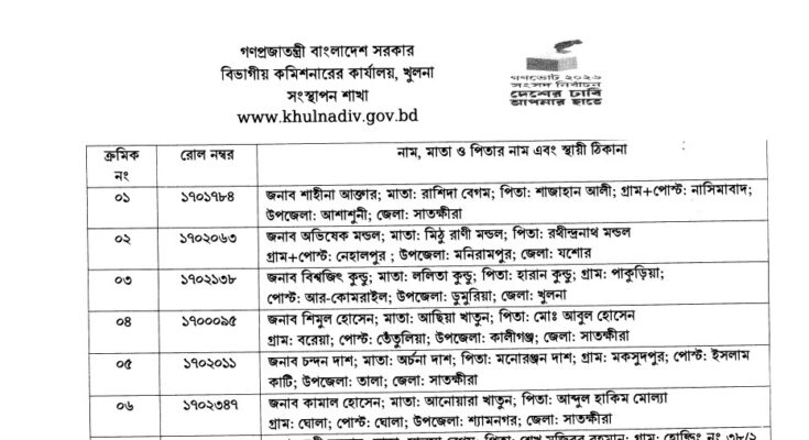 Divisional Commissioner’s Office Khulna Exam Result 2026:
