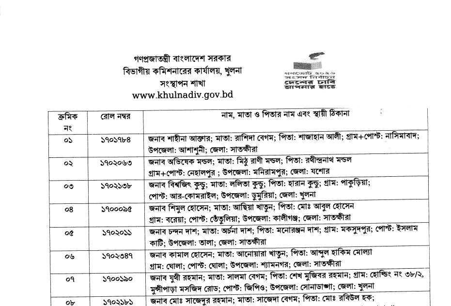 Divisional Commissioners’ Office, Khulna Job Exam Result 2026: