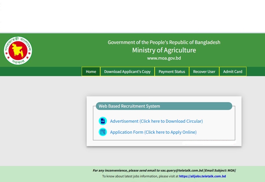 Ministry of Agriculture (MOA) Job Circular 2025 has been published. MOA Job Circular 2025 has been published by the authority. The Ministry of Agriculture Job Circular 2025 is good news for job seekers. All information on the Agriculture Ministry Job Circular 2025 is available below. The Ministry of Agriculture (MOA) is a Government organization in Bangladesh.