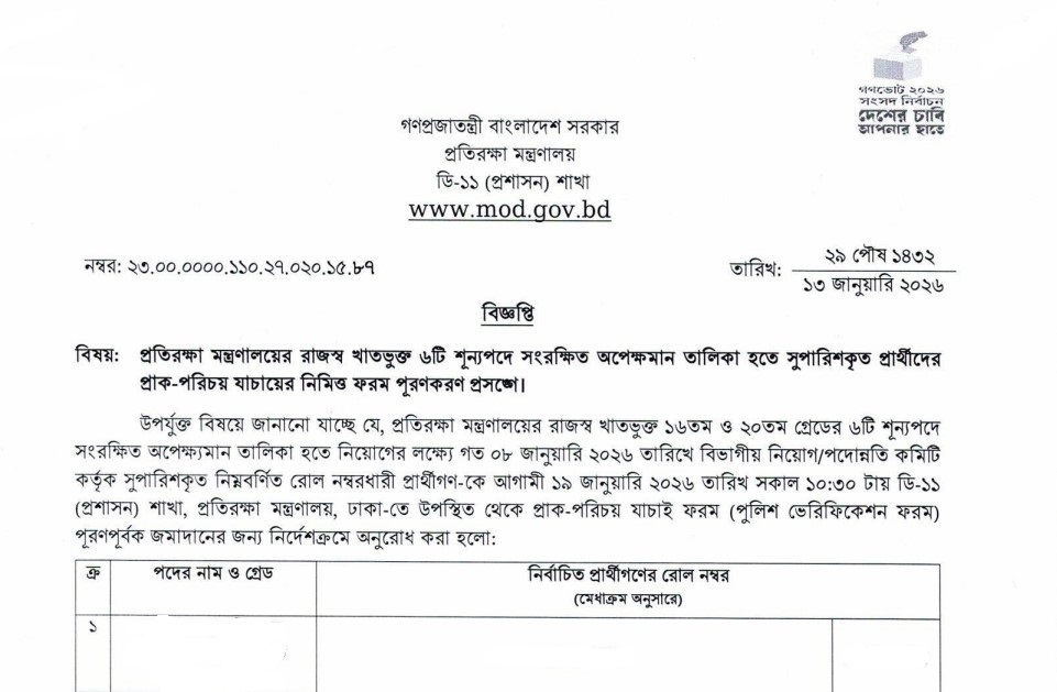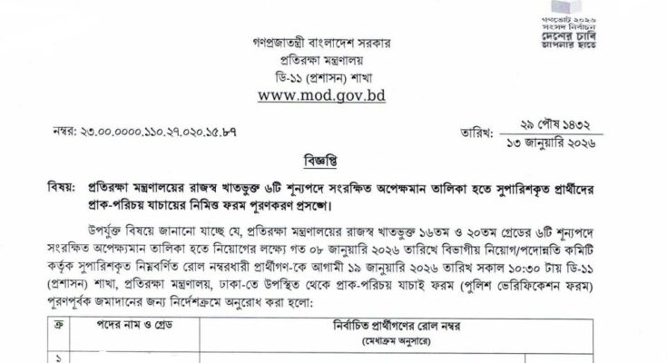 Ministry of Defence (MOD) Panel Result 2026 has been published. MOD Panel Result 2026 has been published by our educational team. MOD Office Sohayok Panel Result 2026 is good news for job seekers in Bangladesh. All information on the Defence Ministry Panel Result 2026 is available below. The Ministry of Defence (MOD) is a Government organization in Bangladesh.
