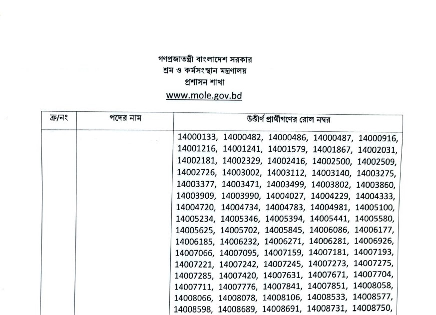 The authority has published the Ministry of Labour and Employment Exam Result 2026. Ministry of Labour and Employment (MOLE) Job Circular information is given above. Ministry of Labour and Employment (MOLE) is one of the largest Government organizations in Bangladesh. The Ministry of Labour and Employment (MOLE) is available on our website, jobstestbd.com. We publish all job circulars every day, Such as Government Jobs in Bangladesh, Bank Jobs in Bangladesh, Private Jobs in Bangladesh, International NGO in Bangladesh, Private companies in Bangladesh, and Private University Jobs in Bangladesh. Bank Jobs Results, Government Jobs Results, Government University Jobs results in Bangladesh, and all Part-time Jobs in Bangladesh, and other educational support are available here on our website. We provide different types of job information, and also provide some effective information or resources and job tips that help to get a job easily. We trust that our distributed data helps job seekers who are looking for superior employment. We likewise share slanting assets for learners who are expanding their knowledge. Our prime target turns into a trustworthy job site in Bangladesh by distributing a genuine update that enables the jobless individuals to. All the jobs on this website are not only for unemployed people but also for employed people. All types of suggestions and solutions to questions for different competitive exams are available here. We provide all types of educational support on our website, jobstestbd.com. So every day, tune in to our website for all kinds of academic support. Please like our Facebook page, jobstestbd.com.