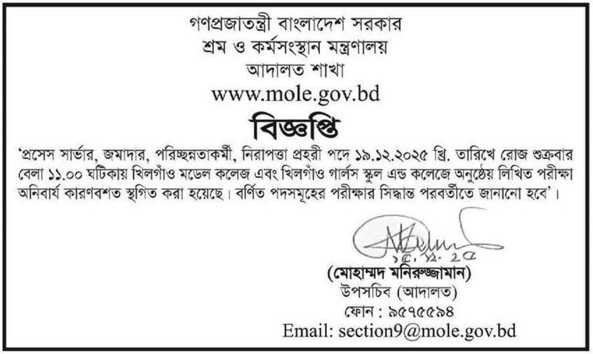 MOLELC Exam Date and Admit Download 2025 have been published. The authority has published the Labour Courts and Labour Appellate Tribunal Exam Date and Admit Download 2025. The Ministry of Labour and Employment Exam Date and Admit Download 2025 is good news for job seekers. All information on the Ministry of Labour and Employment Office Sohayok Exam Date and Admit Download 2025 is available below. The Ministry of Labour and Employment (MOLE) is a Government organization in Bangladesh.