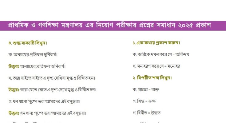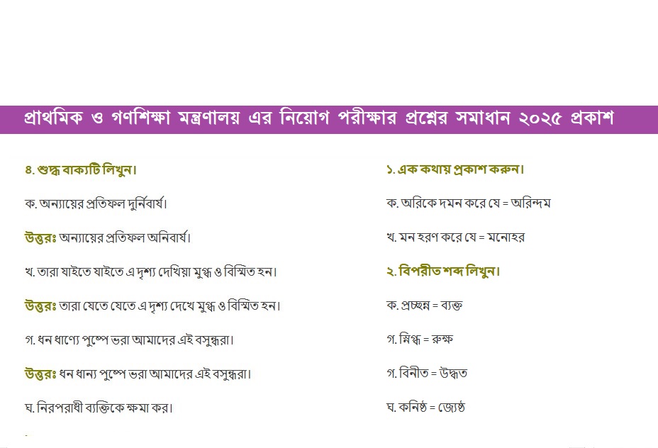 Ministry of Primary and Mass Education Exam Question Solution 2025: